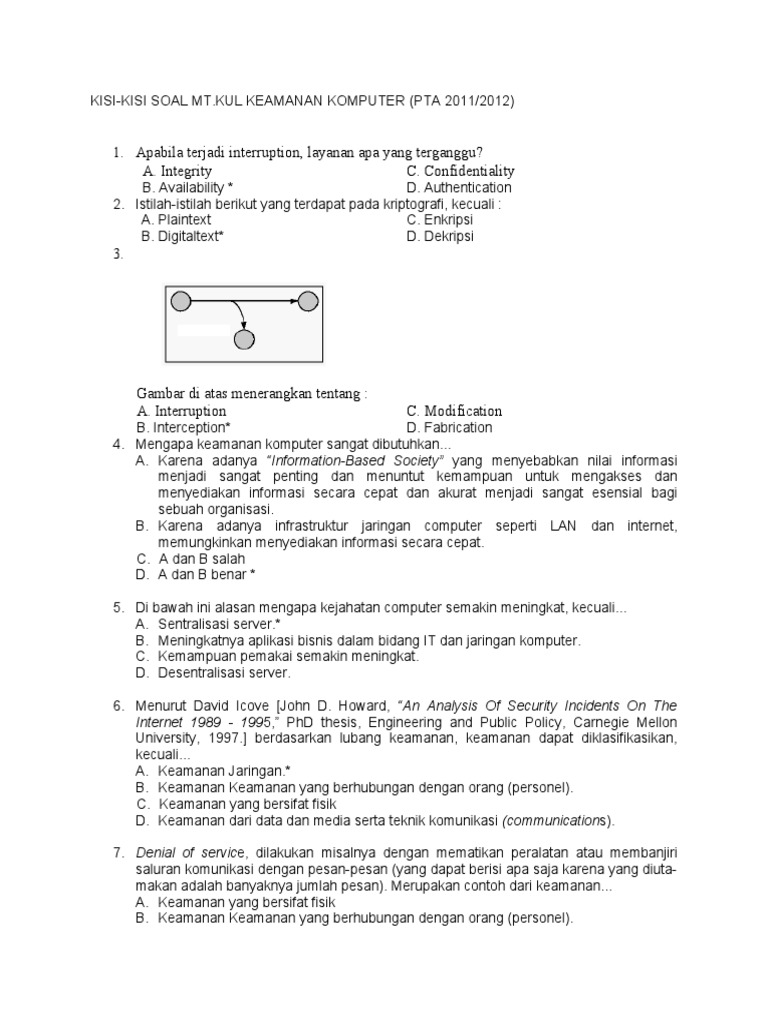 Pusat studi keamanan jaringan komputer dari ancaman hacker b. Secure system layer dan transport layer security c. Bagian pertama pilihan ganda, rujukan soal pendidikan agama… Soal pilihan ganda tentang firewall menggunakan iptables. Contoh soal spldv dan spltv pilihan ganda +jawaban.